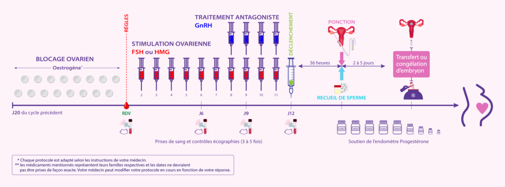 En général, les médicaments utilisés dans les protocoles de stimulation ovarienne sont :